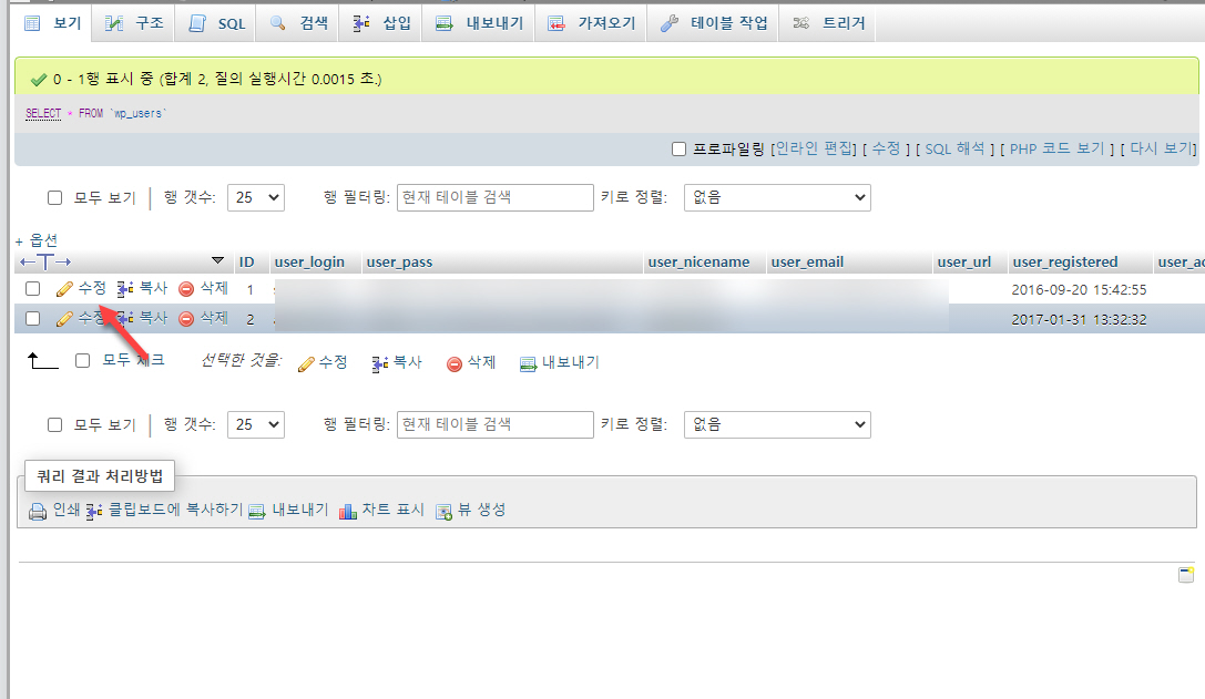 phpMyAdmin을 통해 워드프레스 관리자 비밀번호 변경하기