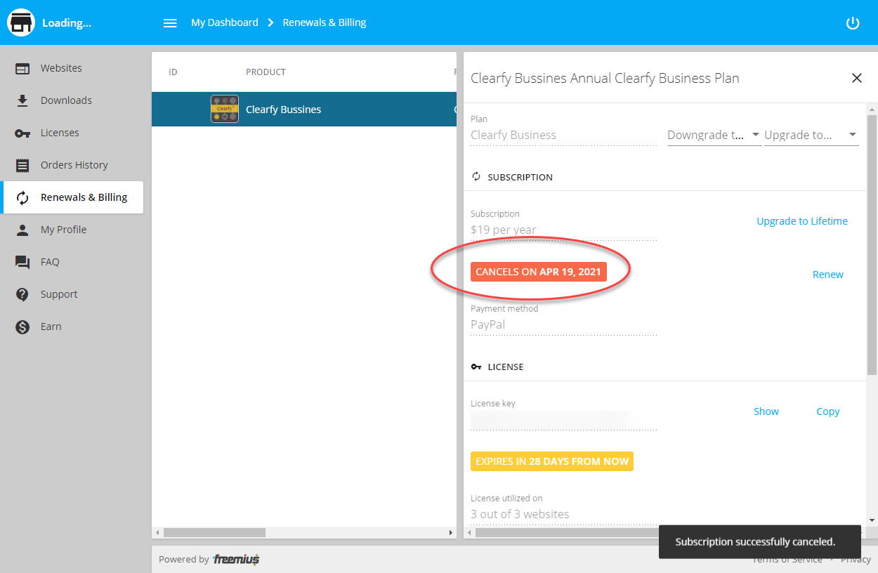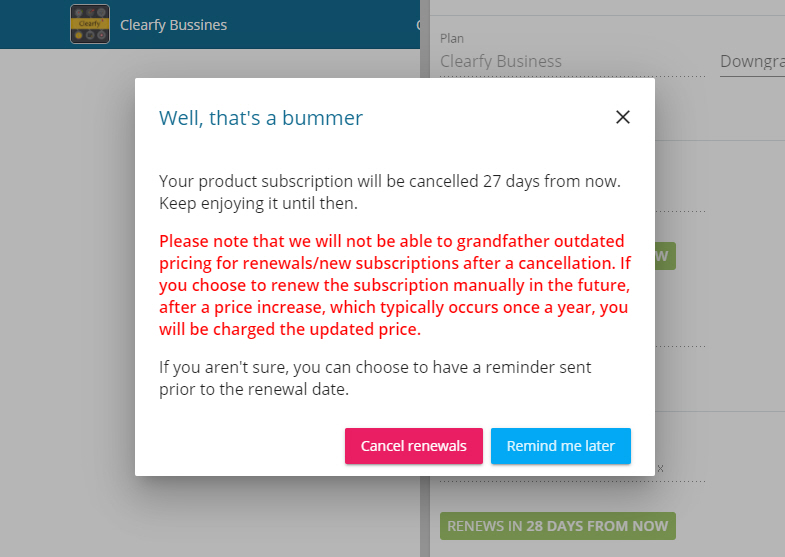 Clearfy 자동 갱신 취소하기