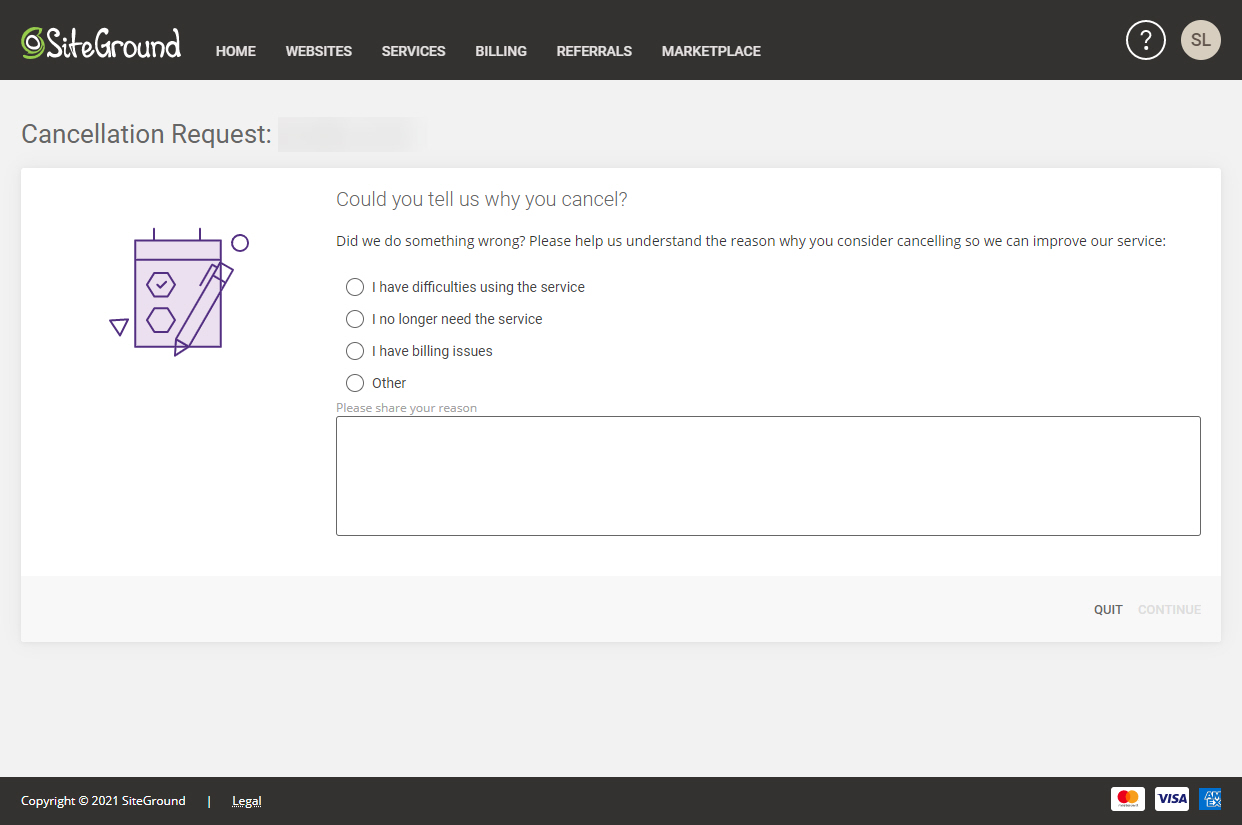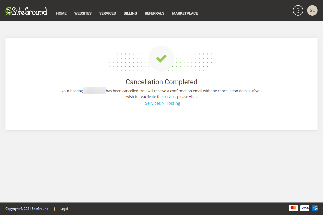 사이트그라운드 서비스를 더 이상 이용하지 않을 경우 만료되기 전에 서비스를 취소할 수 있습니다.