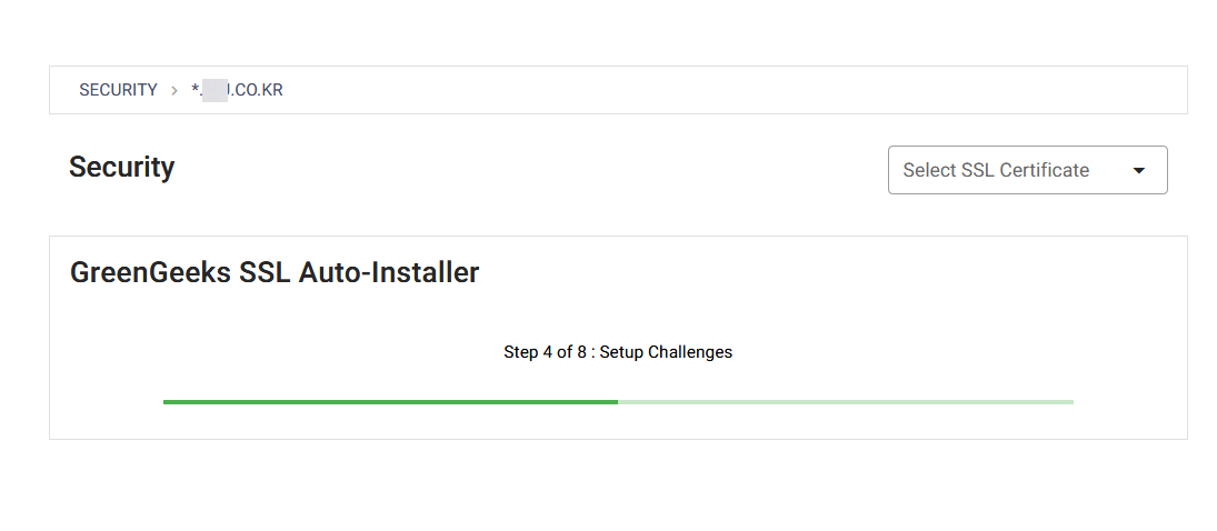 SSL 인증서 설치가 시작되고 진행 사항이 표시됩니다.