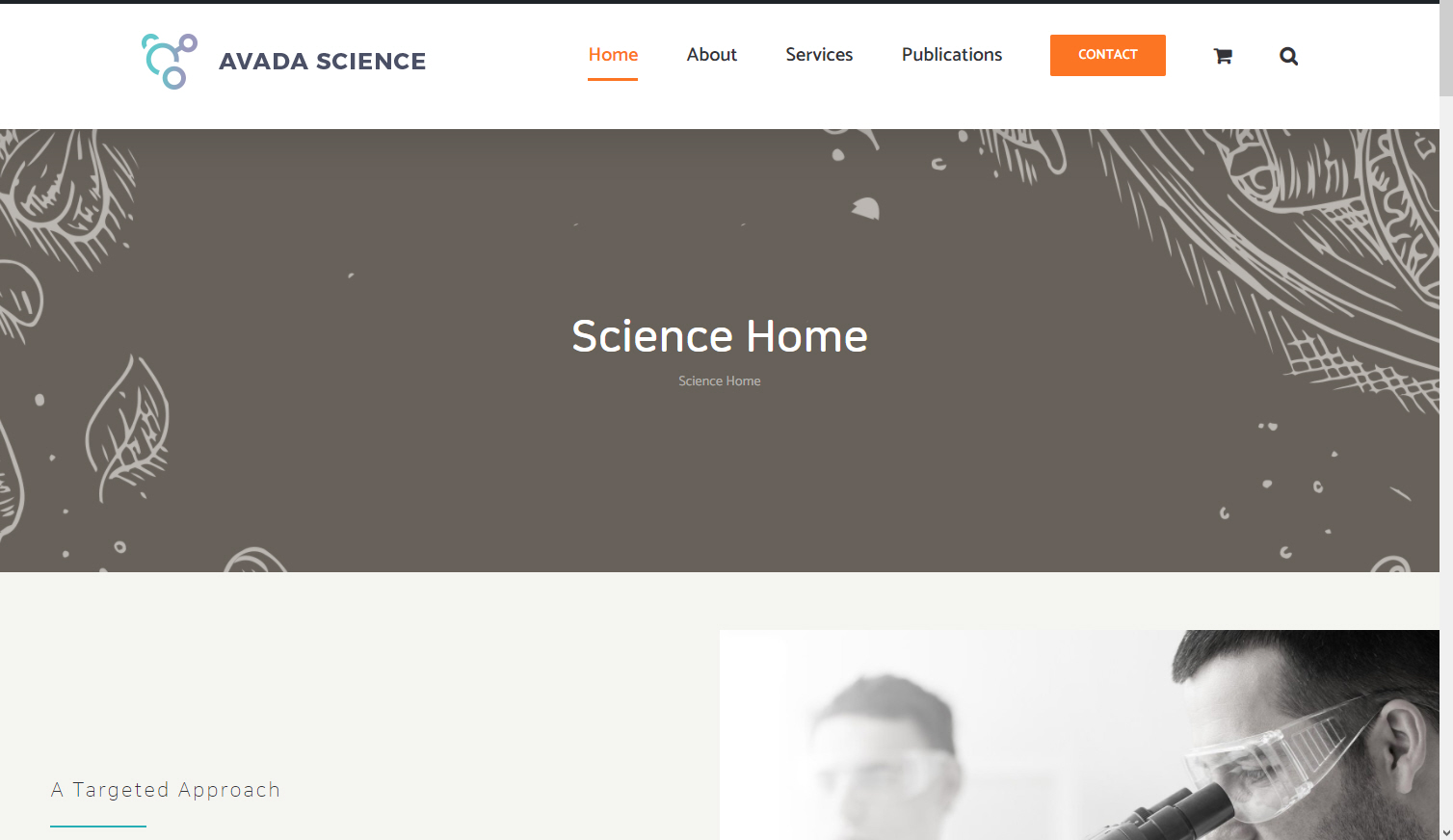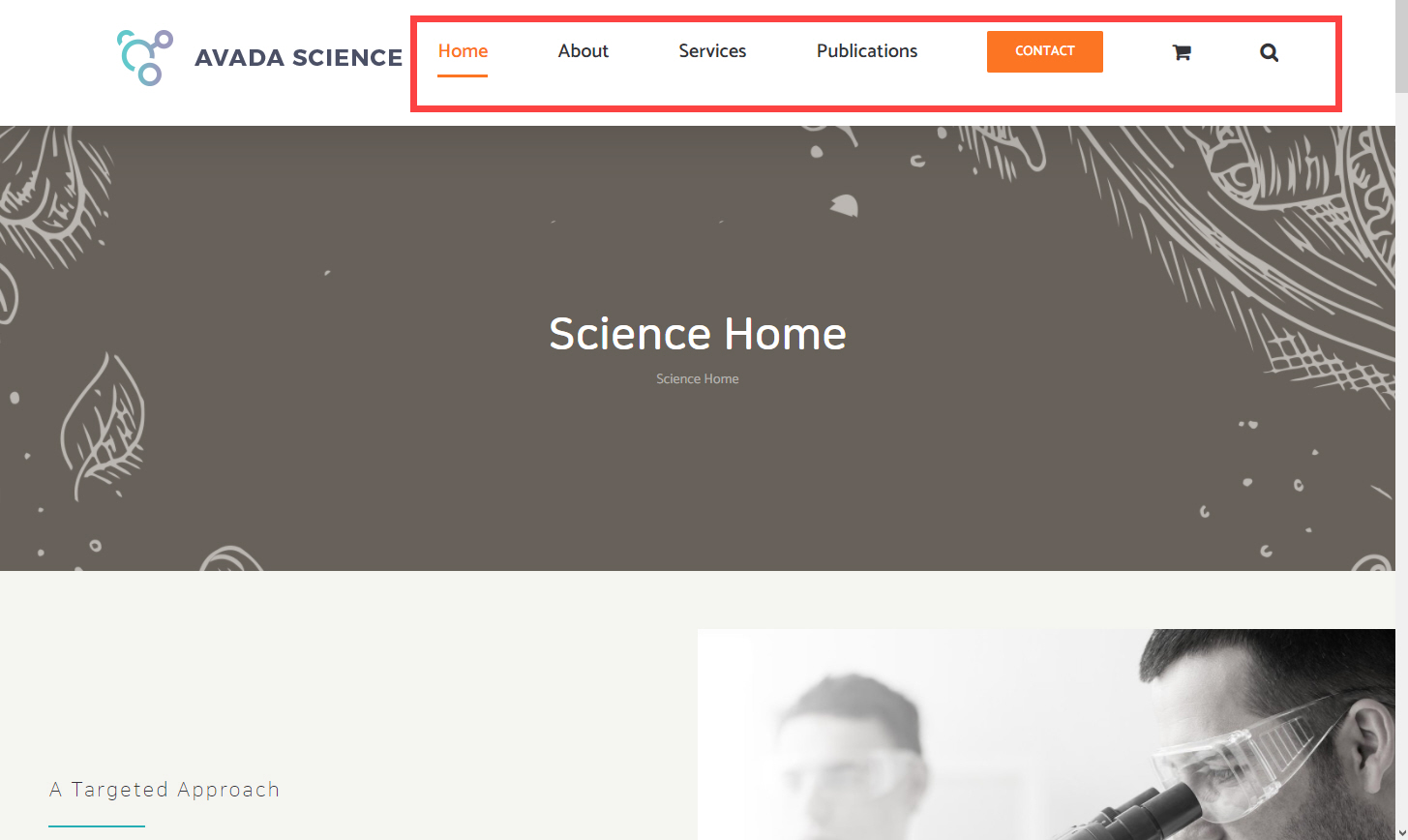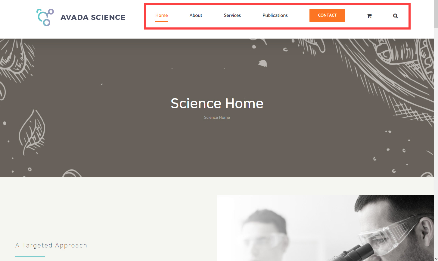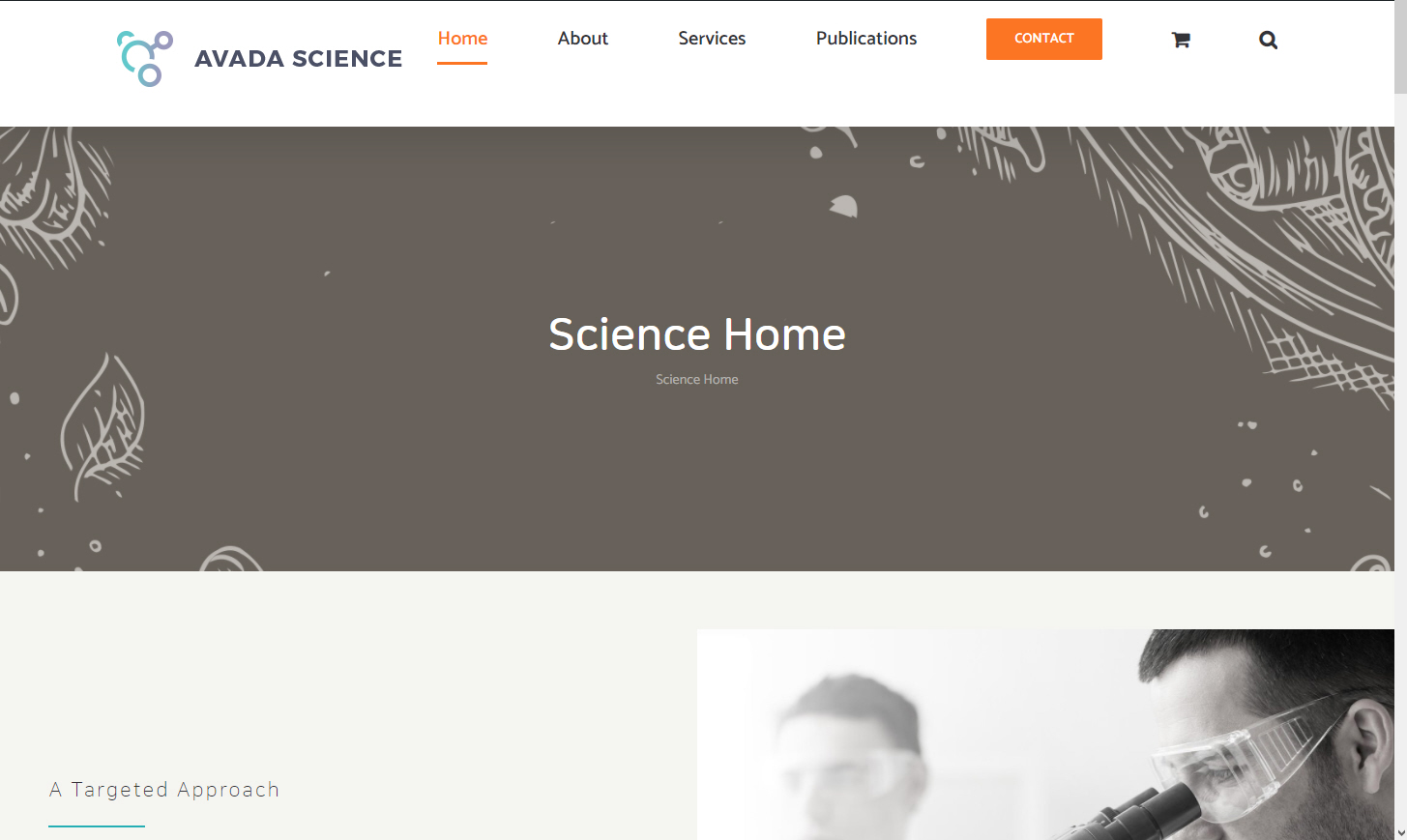 다음은 Avada Science라는 데모를 로드했을 때의 헤더를 보여줍니다.