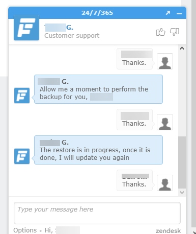 이 경우 FastComet에 연락하여 사이트 롤백을 요청할 수 있습니다.