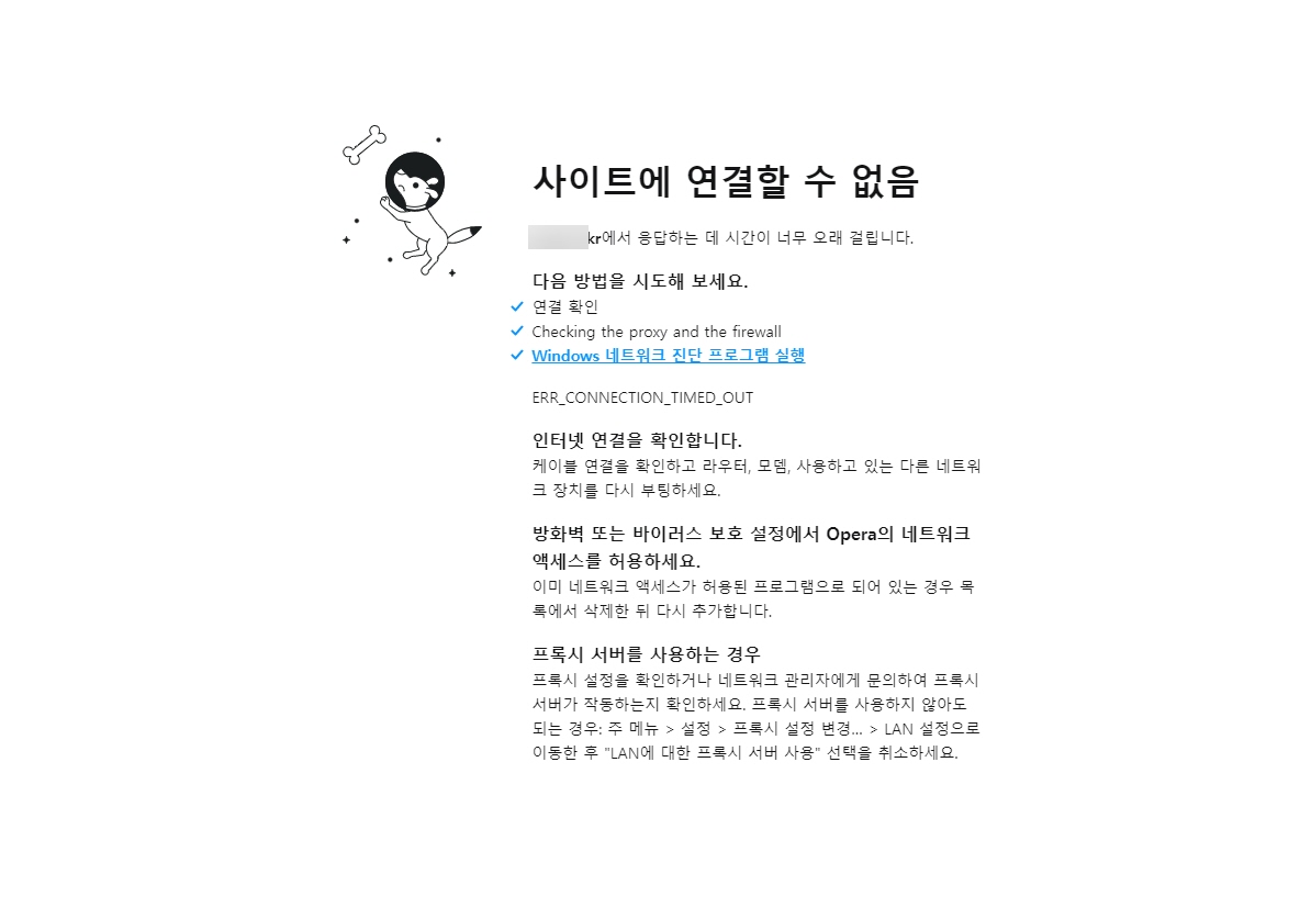 오페라 브라우저로 접속해도 비슷한 오류 메시지가 표시되었습니다.