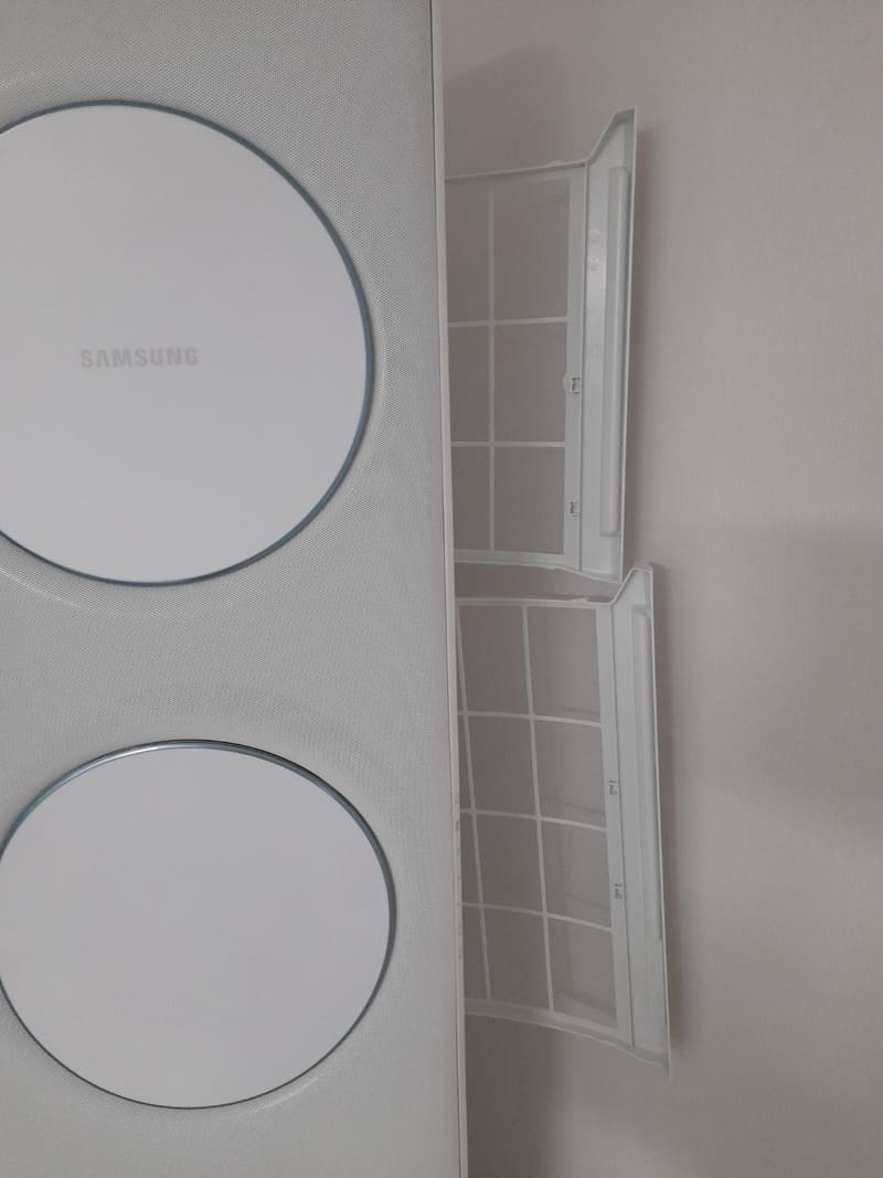 (* 2021년 7월 추가: 에어컨을 며칠 가동을 하니 필터 청소 메시지가 표시되었습니다. 필터가 깨끗한 편인데도 이런 메시지가 표시되네요. 2개의 필터를 빼내어 샤워기로 물청소하고 건조한 후에 다시 장착하니 '필터 청소' 메시지가 사라졌습니다.)