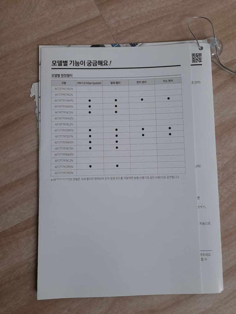※AF**T*****ZN 모델은 극세 필터만 장착되어 있어 청정 모드를 작동하면 송풍(선풍기와 같은 바람)으로 운전합니다.