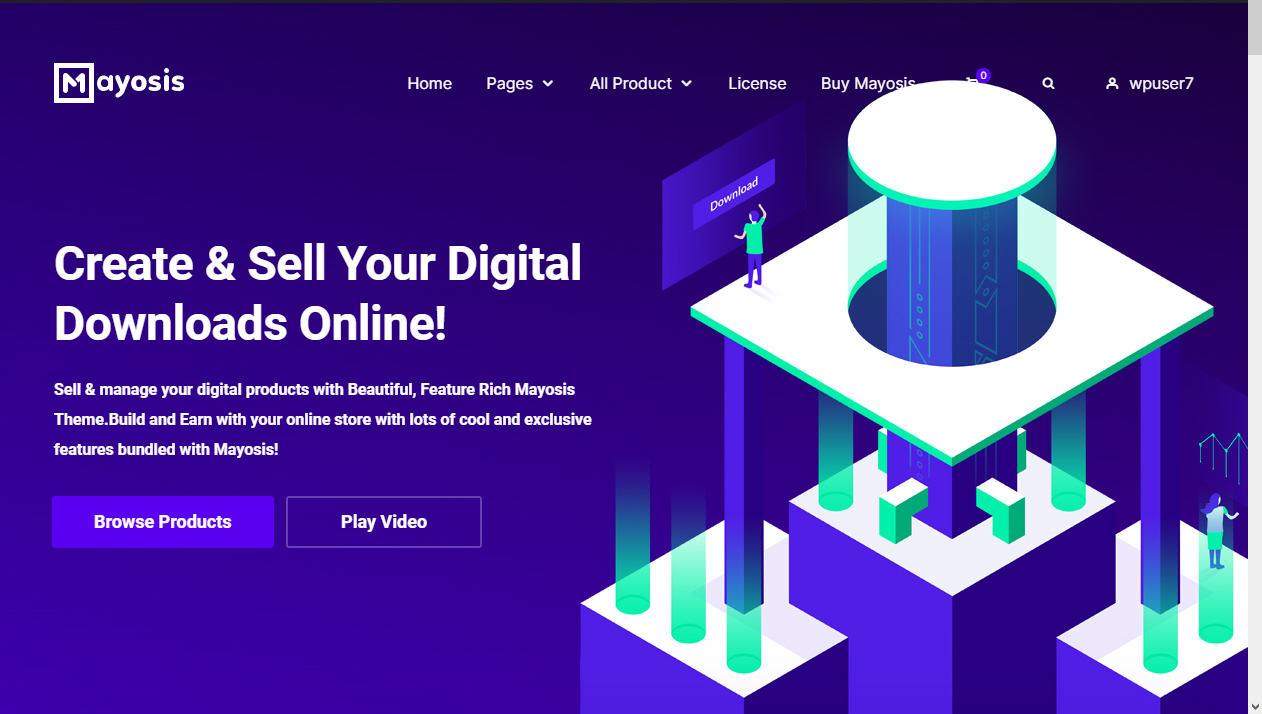 템플릿, 아트, 튜토리얼, 뮤직, 전자책(이북), 스톡 이미지, 테마, 스킨, 플러그인, 코드 스니펫, 소프트웨어, 디지털 서비스 등의 품목을 판매하고 싶은 경우 Mayosis 테마를 고려할 수 있습니다. 워드프레스와 무료 Easy Digital Downloads 플러그인을 기반으로 Mayosis는 아마존, eBay, Etsy, (워드프레스 테마/플러그인/스톡 사진/동영상 템플릿/뮤직 파일 등을 판매하는) Themeforest, CreativeMarket과 같은 마켓플레이스 사이트를 만들 수 있습니다.