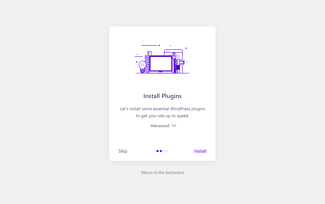 차일드 테마(자식 테마) 설치가 완료되면 Install Plugins 단계로 넘어갑니다.