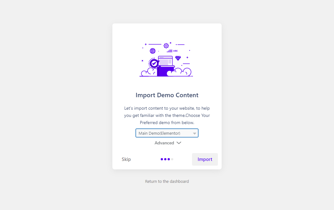플러그인 설치가 완료되면 데모 콘텐츠 가져오기 화면이 표시됩니다.