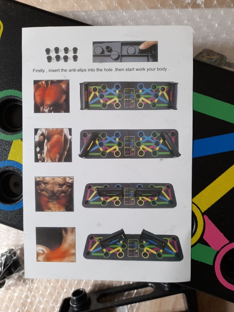 동봉된 설명서에 푸시업바의 위치에 따라 자극을 받는 근육이 표시되어 있습니다.