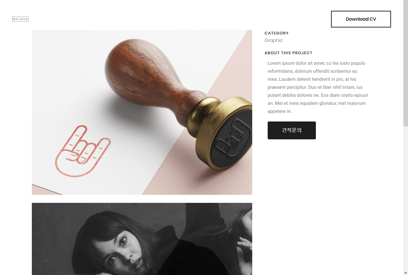 브릿지 테마의 포트폴리오 기능을 사용하면 이외에도 다양한 형식으로 포트폴리오 페이지를 만들 수 있습니다.