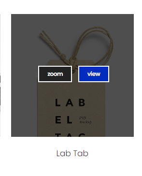 썸네일에 마우스를 올리면 Zoom 버튼과 View 버튼이 표시되고, Zoom 혹은 View 버튼 위로 마우스를 올리면 배경색이 하얀색이 되어 글자색이 보이지 않을 수 있습니다. 그런 경우 CSS 코드를 사용하여 적절히 커스텀하도록 합니다.