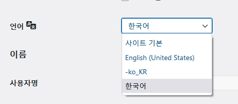 설치형 워드프레스에서 사이트 언어와 대시보드 인터페이스 언어 설정/변경하기