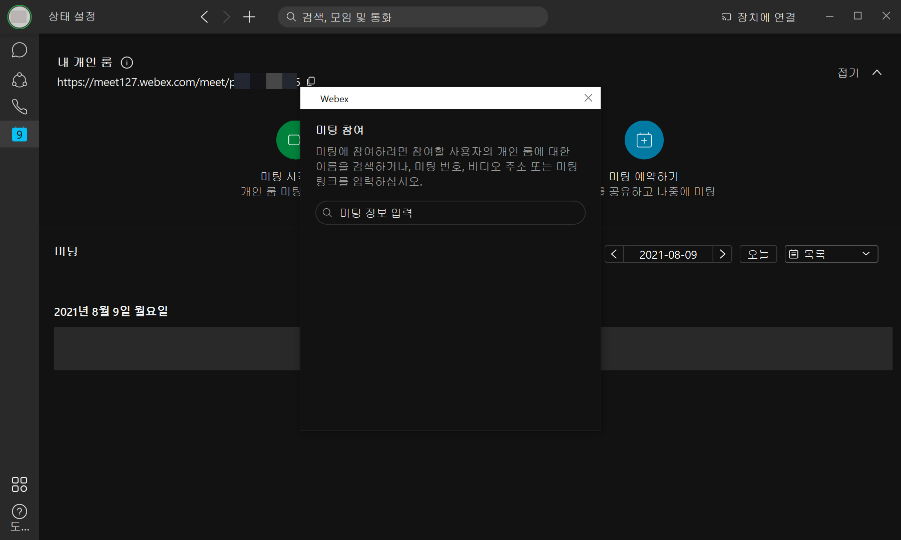 Webex PC 버전 미팅 참여하기