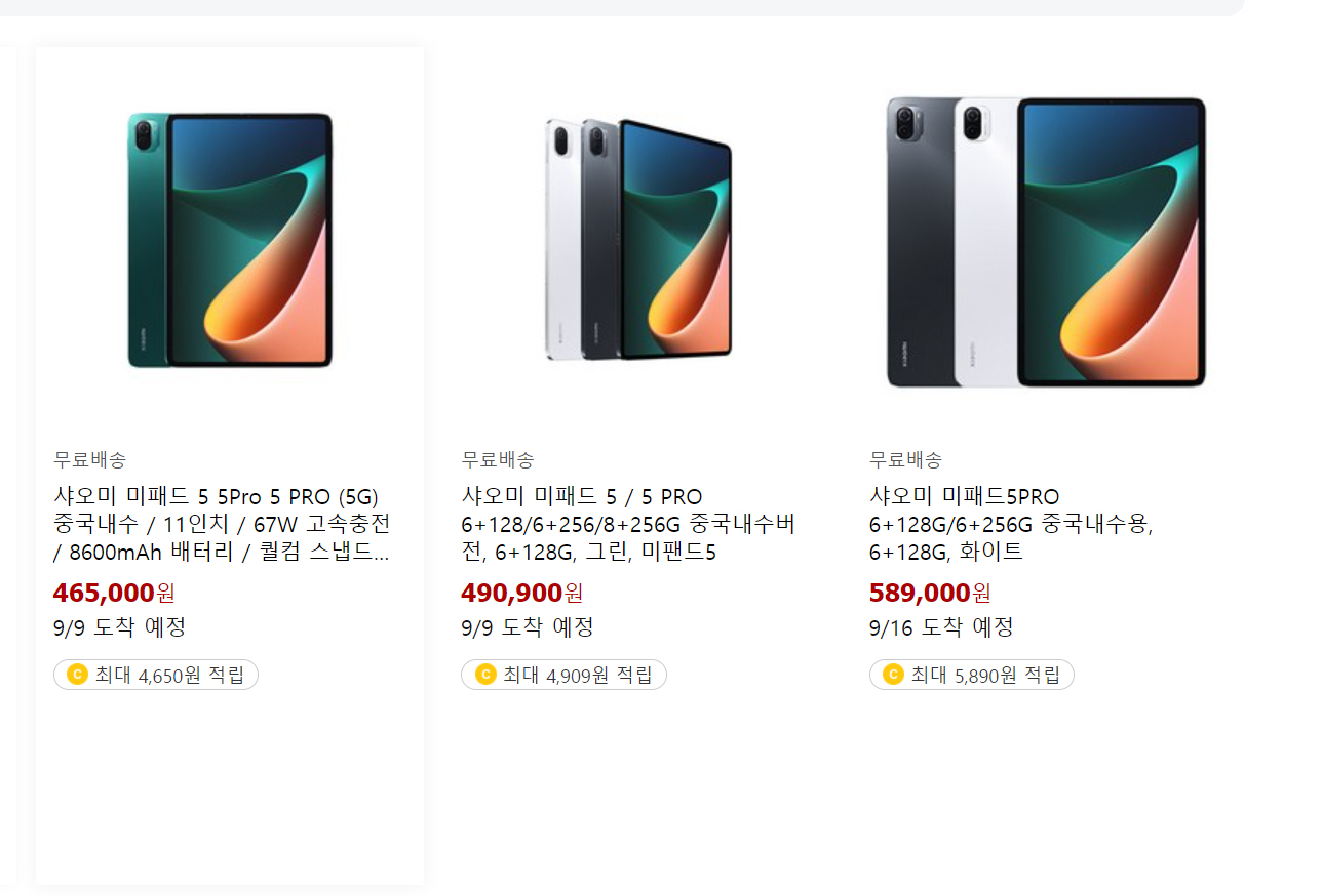 샤오미 미패드 5는 우리나라에서 8월에 전파인증을 획득했고 9월 중으로 정식 출시될 것으로 보입니다. 샤오미 미패드는 기본 모델과 프로 모델이 있으며, 전파인증을 1건만 획득한 것으로 보아 프로 모델은 국내에서 정식 출시되지는 않을 것으로 예상됩니다.