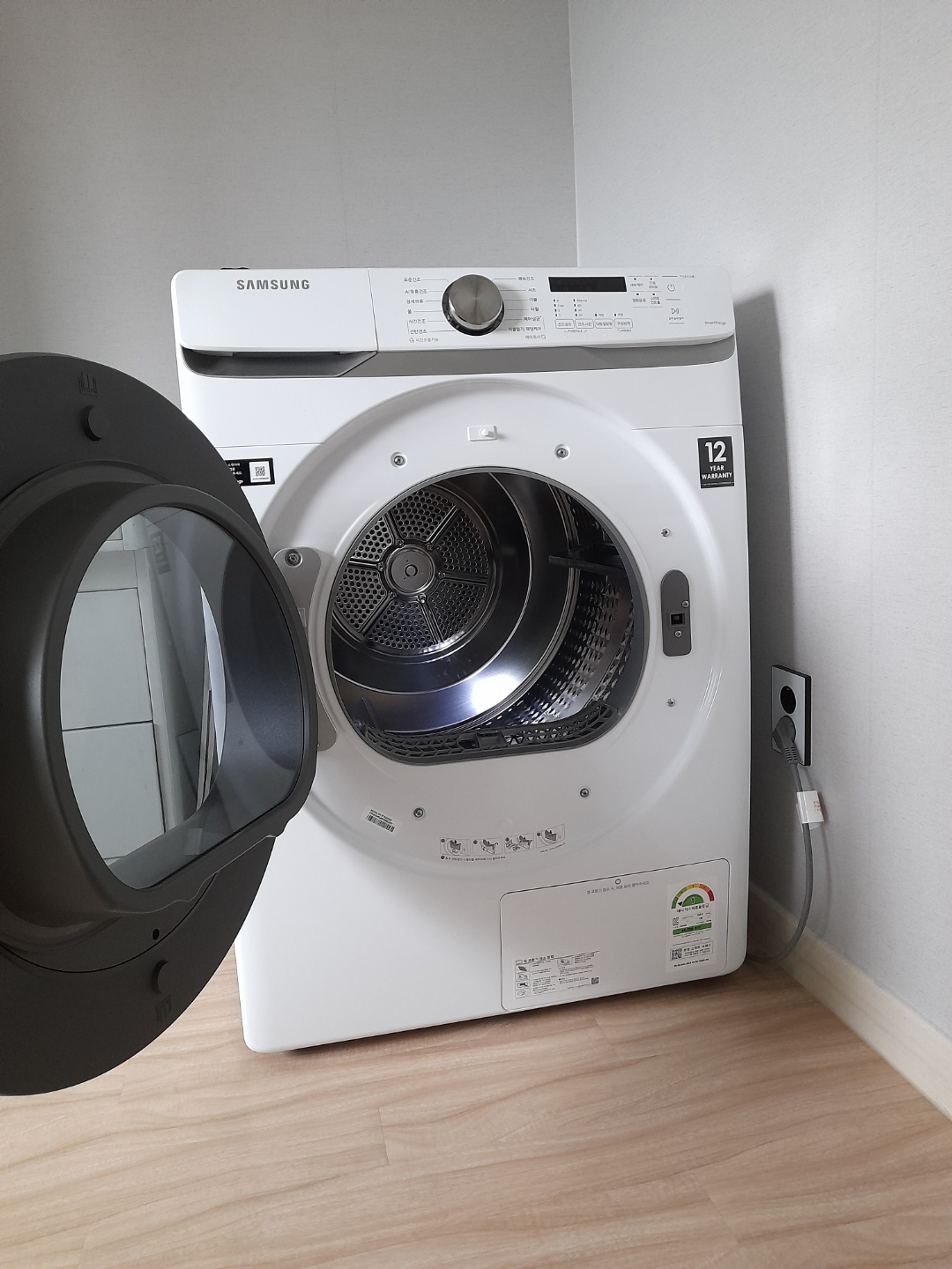 이사를 하면서 세탁기와 건조기를 함께 구입하려고 했지만, 세탁실이 좁아서 세탁기는 기존 것을 사용하고 건조기만 구입하여 세탁실에 인접한 방에 두었습니다.