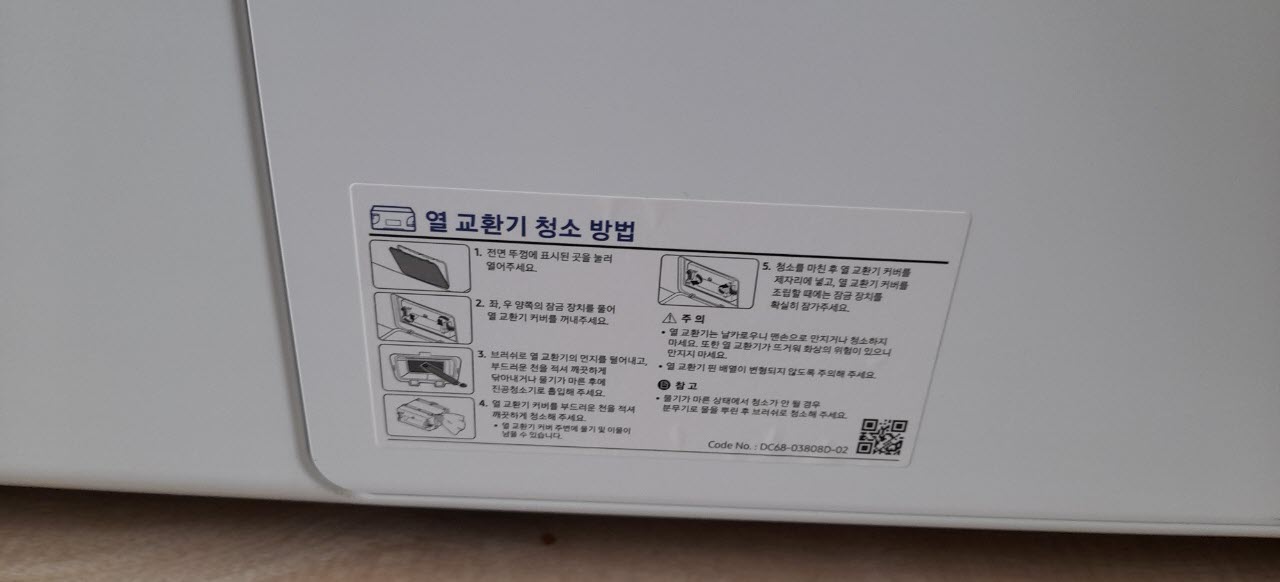 열 교환기 청소 방법이 하단에 표시되어 있습니다.