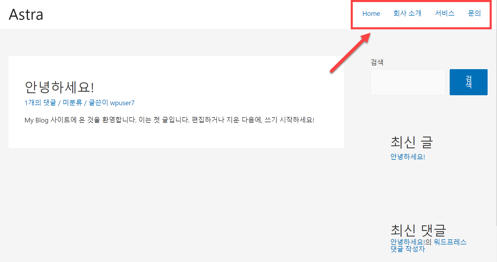 사이트를 살펴보면 메뉴가 생성된 것을 확인할 수 있습니다.