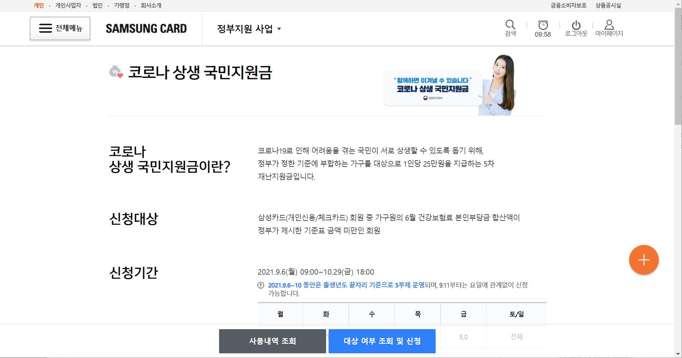 삼성카드로 국민지원금 신청