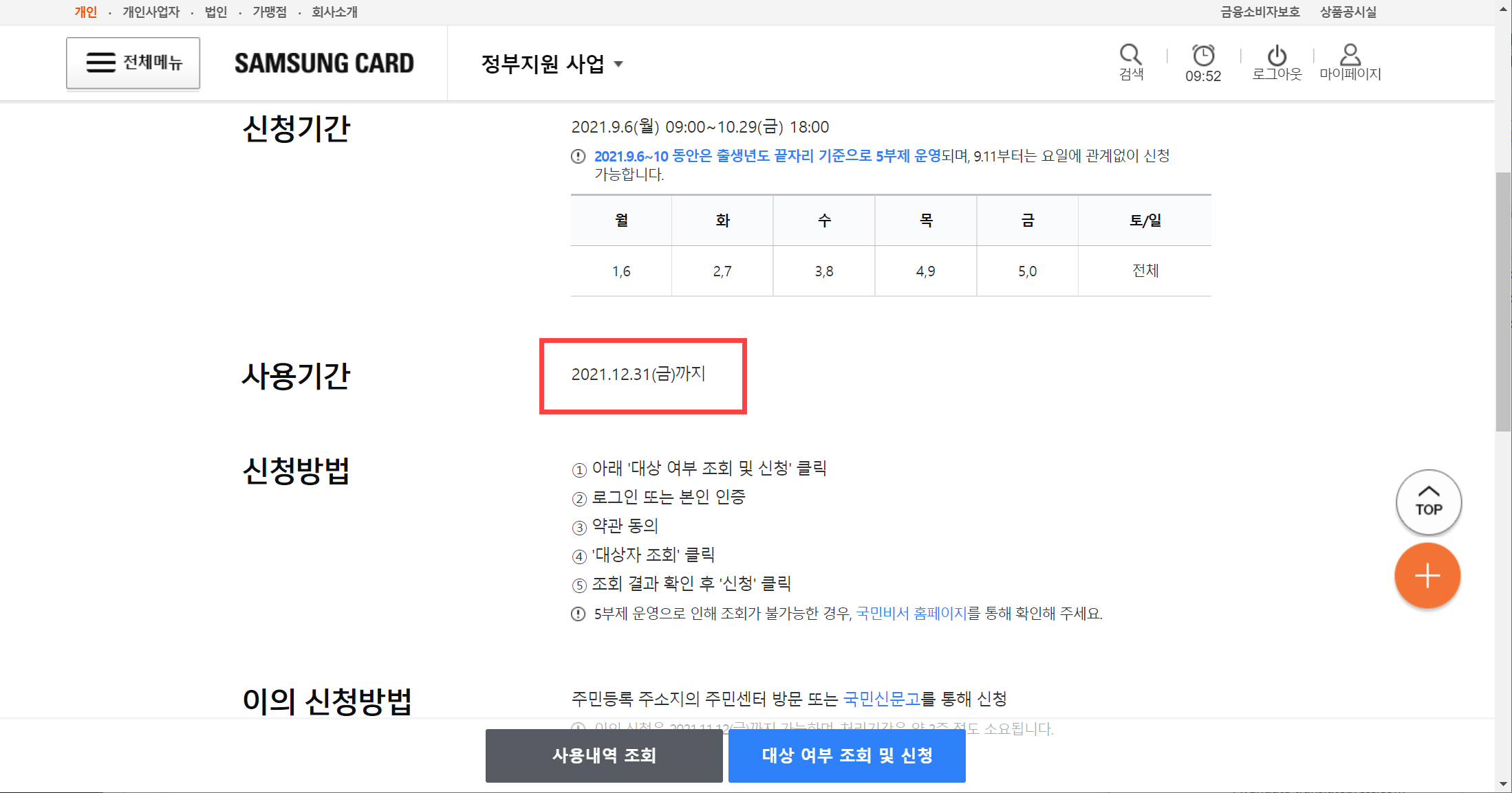 지난 월요일부터 코로나 상생 국민지원금(5차 재난지원금) 신청이 시작되었습니다. 시행 첫 주에는 출생연도 끝자리에 따른 요일제가 적용되고 있습니다. 저는 삼성카드 홈페이지에서 국민지원금을 신청했습니다.