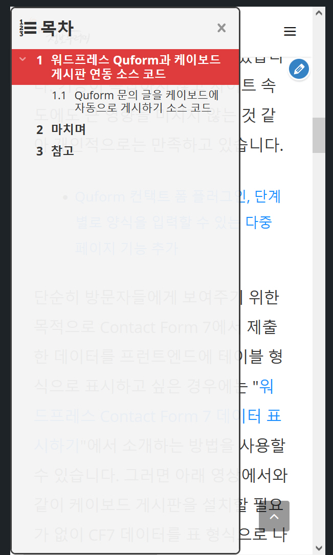워드프레스 목차 만들기 플러그인 Fixed TOC - 워드프레스 정보꾸러미