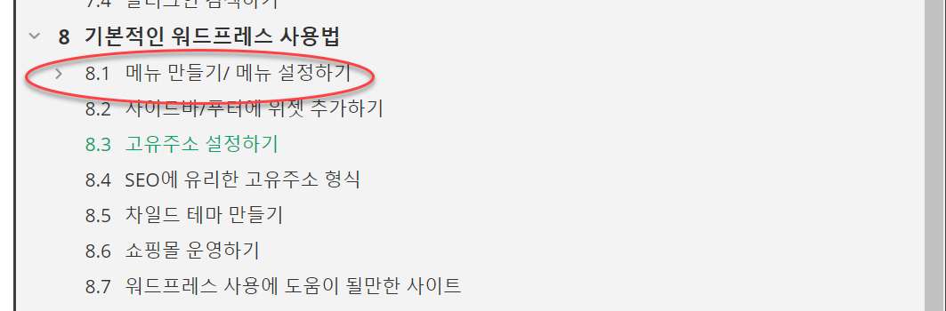 목차 오른쪽의 > 아이콘을 클릭해야 목차가 펼쳐집니다.