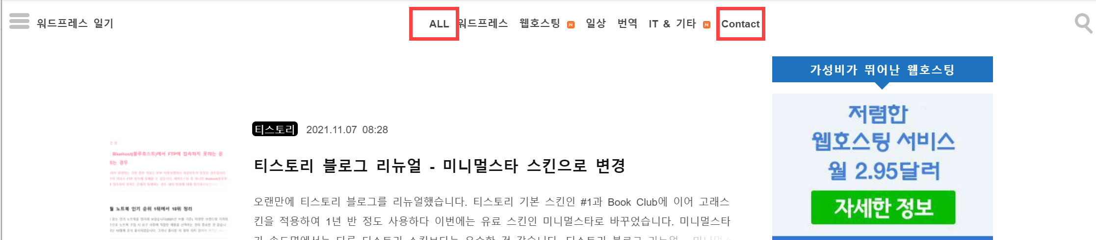 티스토리 블로그 리뉴얼 - 미니멀스타 스킨으로 변경