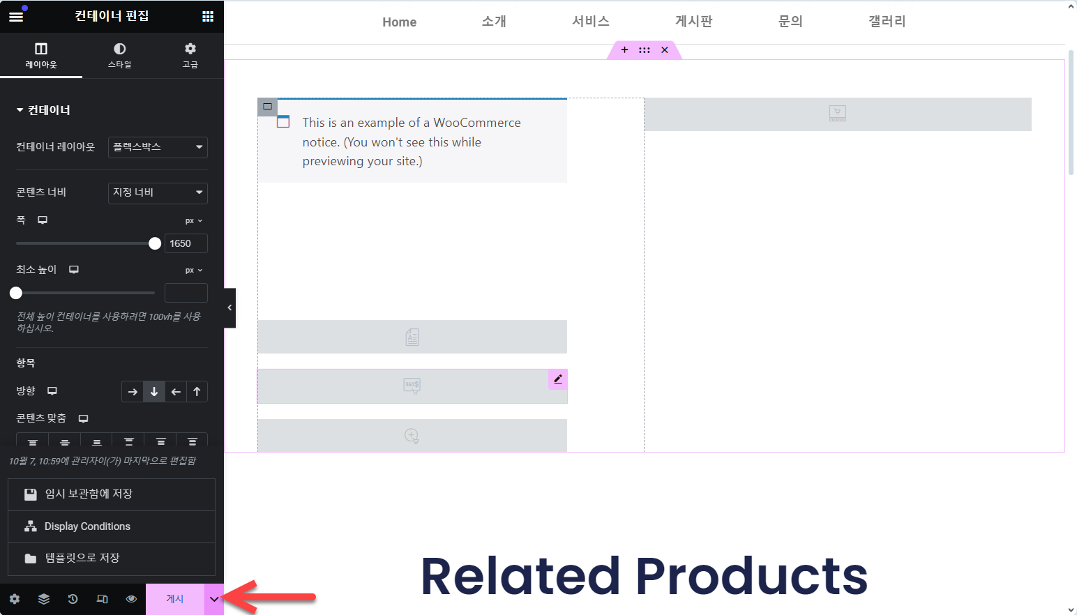 편집이 완료되면 게시 옆에 있는 화살표를 클릭하고 Display Conditions를 클릭합니다.