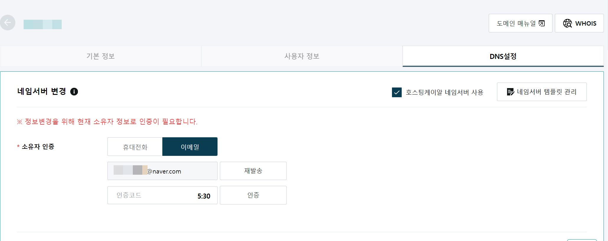 호스팅케이알 도메인 네임서버 정보 변경하기