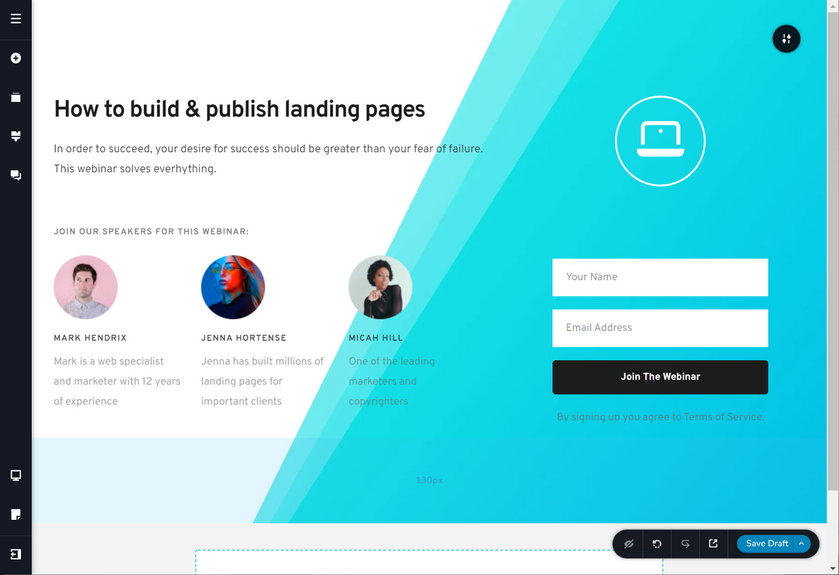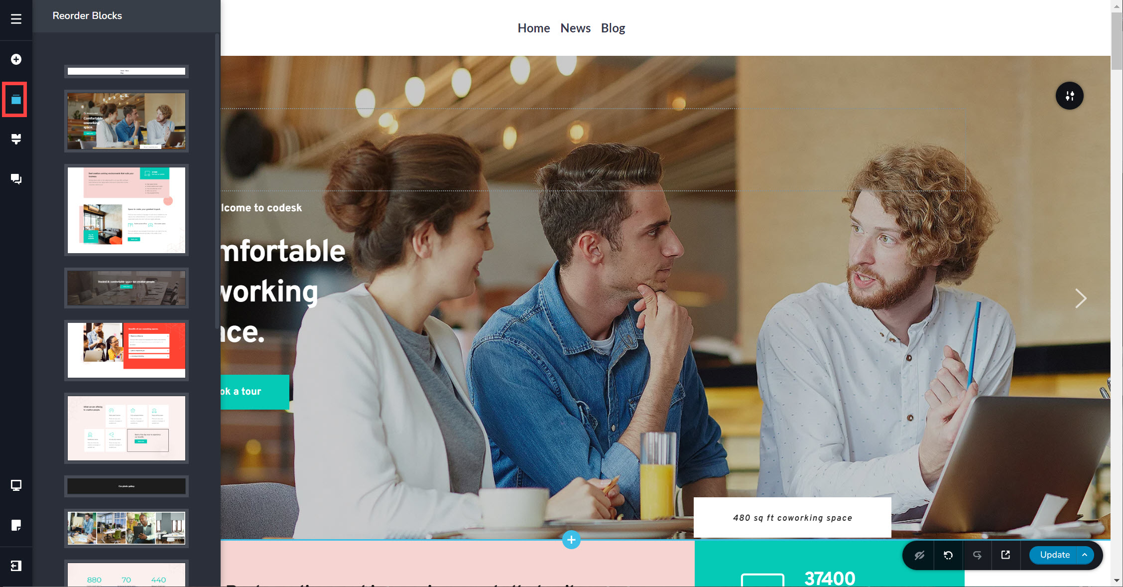사이트에 가입한 후에 곧바로 랜딩 페이지를 만들 수 있습니다. 그러면 미리 만들어진 블록이나 레이아웃을 로드하여 입맛에 맞게 수정이 가능합니다.