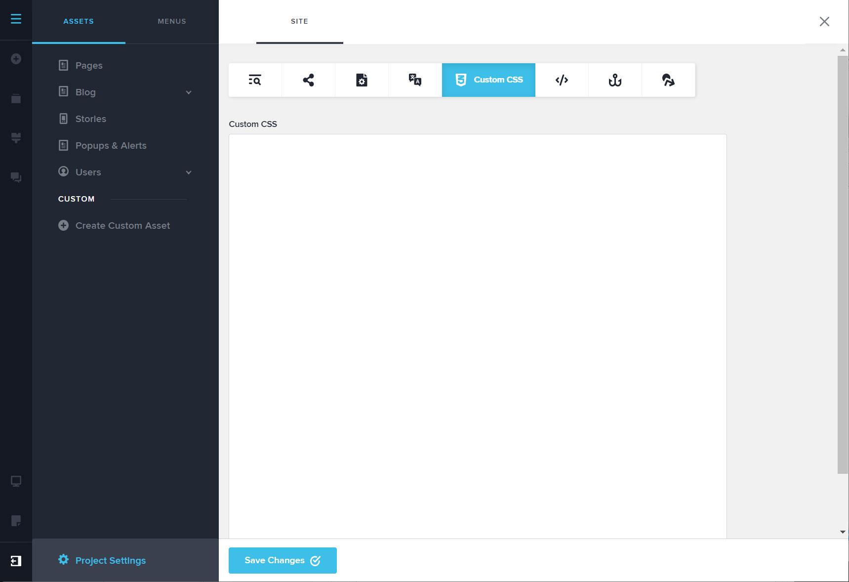 Custom CSS 탭에는 커스텀 CSS 코드를 추가할 수 있습니다. 무료 플랜에서도 커스텀 CSS를 추가할 수 있습니다.