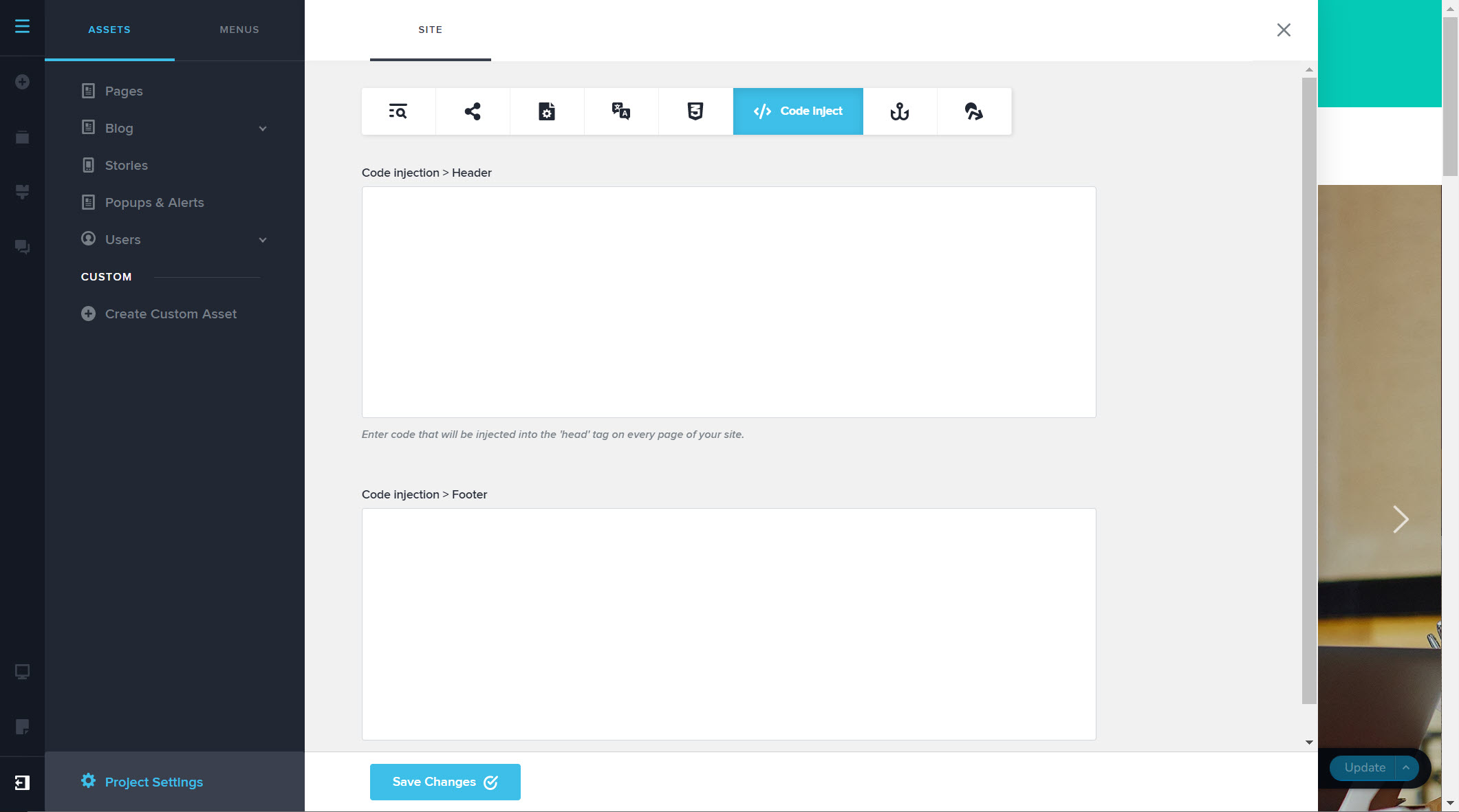 Code Inject 탭에 코드를 추가할 수 있습니다.