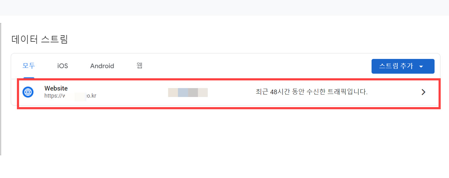 2. 데이터 스트림을 클릭하면 데이터 스트림 목록이 표시됩니다. IP 주소를 필터링하거나 IP 주소를 제외할 데이터 스트림을 클릭합니다. 아래 그림에서는 1개의 데이터 스트림이 있습니다.