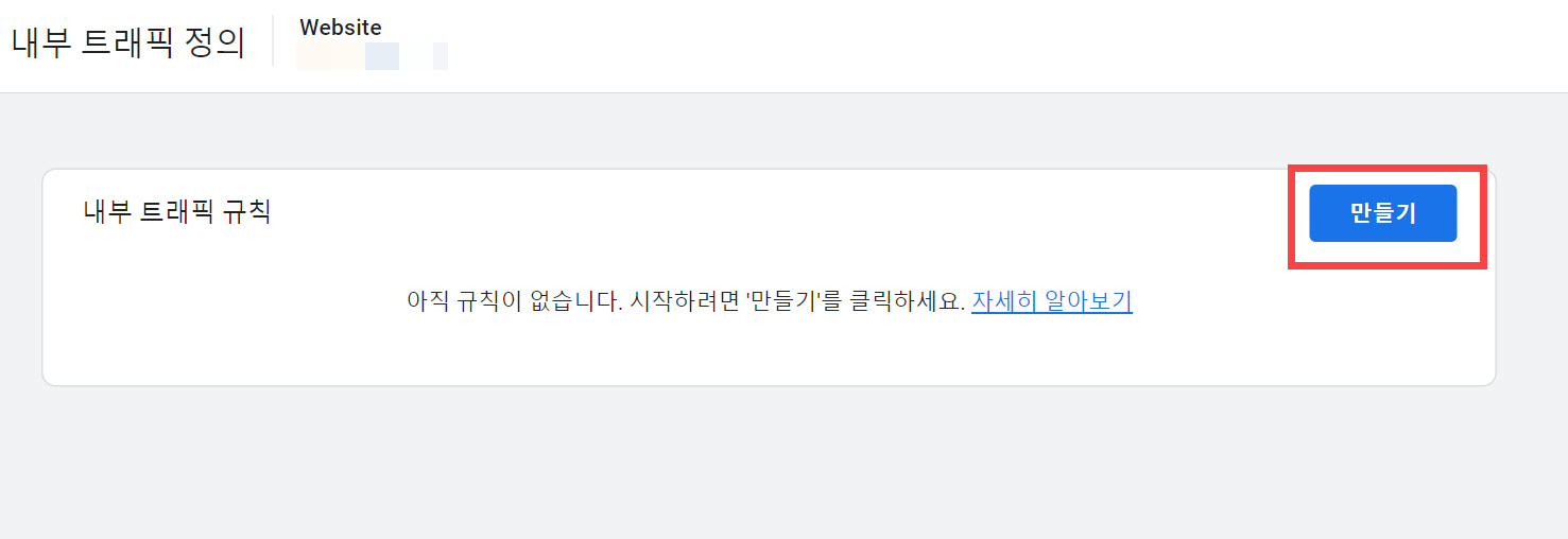 5. 내부 트래픽 정의 화면이 표시되면 내부 트래픽 규칙을 만들기 위해 "만들기" 버튼을 클릭합니다.