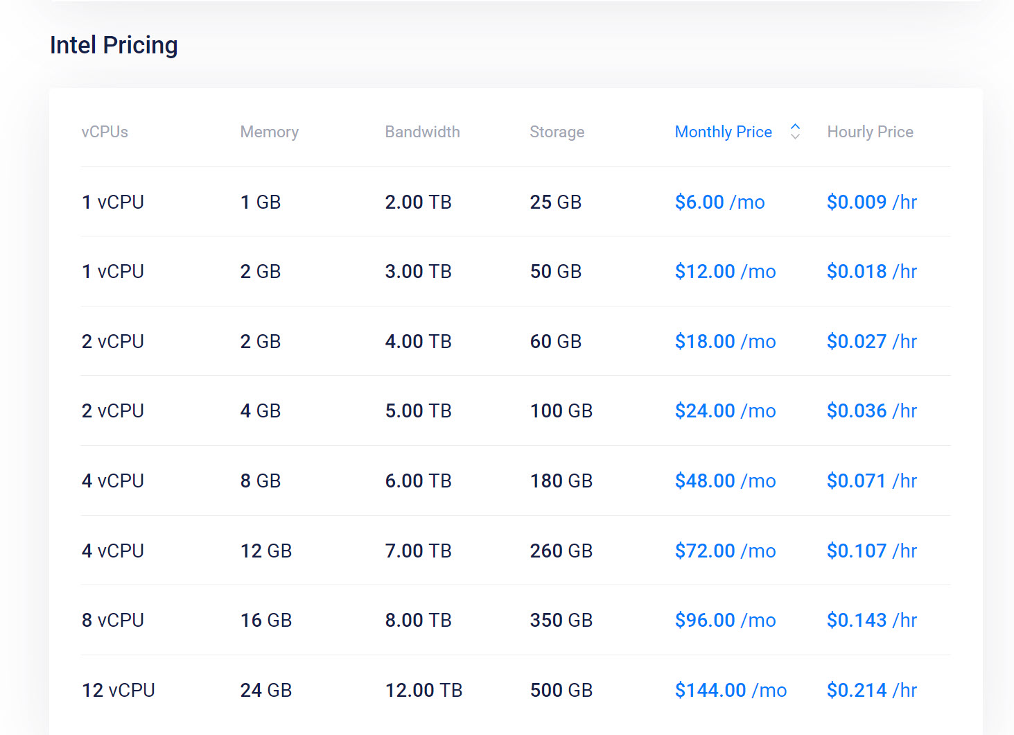 예를 들어, Vultr 요금제의 경우 1GB 램, 2TB 대역폭 상품이 월 6달러이지만, Cloudways에서는 1GB 램, 1TB 대역폭 상품이 월 11달러이고, Vultr의 2GB 램, 3TB 대역폭 상품이 월 12달러인 반면, Cloudways에서는 2GB 램, 2TB 대역폭 상품이 월 23달러 정도입니다.