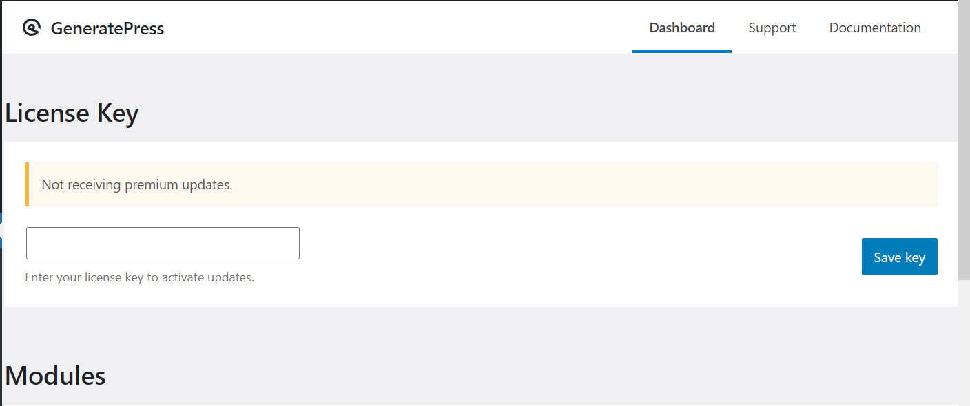 GeneratePress 프리미엄 라이선스 키 제거하기