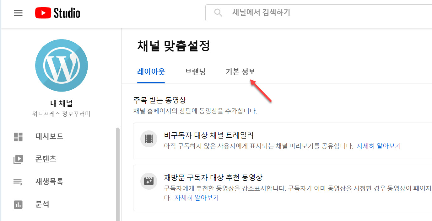 다음 화면에서 채널 맞춤설정 버튼을 클릭합니다.
