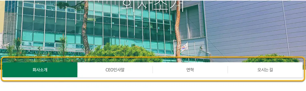 이상으로 모바일 기기에서 Elementor 탭을 PC에서와 동일하게 유지하는 방법에 대하여 살펴보았습니다. 다음과 같은 레이아웃으로 내비게이션 메뉴를 만드는 방법에 대하여 문의하는 분들이 계시는데요. 이런 서브 메뉴도 엘리멘터 탭 위젯을 사용할 수 있습니다.
