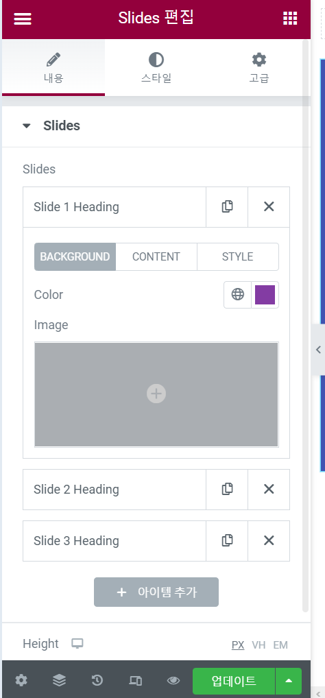 엘리멘터 페이지 빌더에서 슬라이드를 만들려는 경우 참고해보세요.