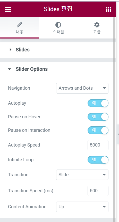 워드프레스 엘리멘터 슬라이드 위젯