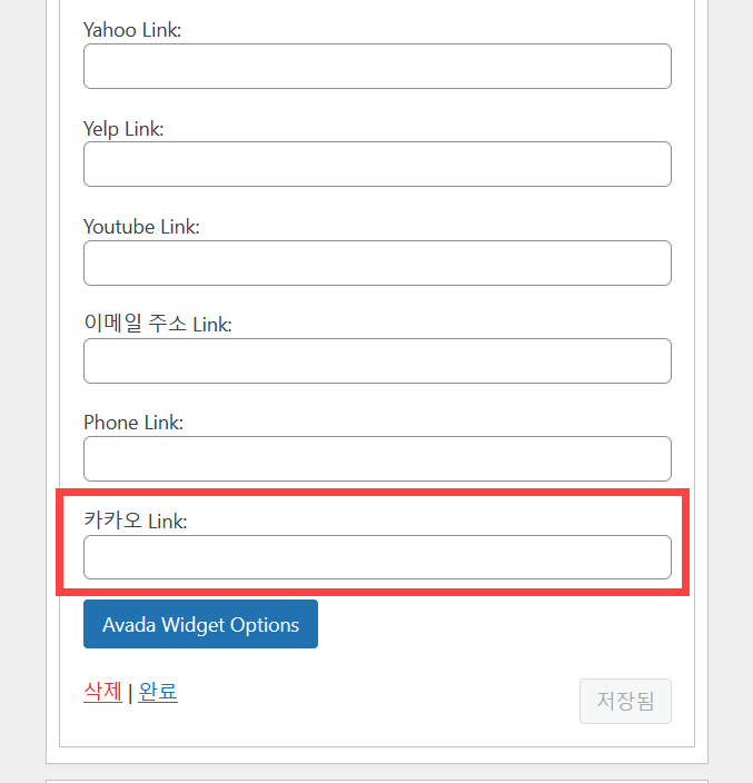 워드프레스 Avada 테마에서 카카오톡이나 네이버 블로그 등으로 연결되는 소셜 아이콘을 추가하고 싶은 경우 먼저 커스텀 소셜 미디어 아이콘을 추가해야 합니다.