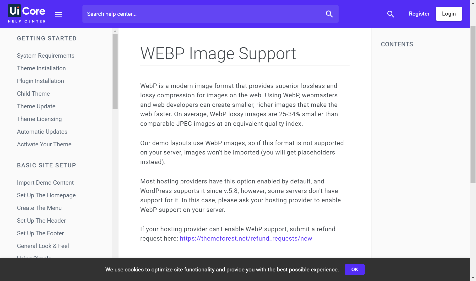 이와 비슷한 문제가 발생하면 웹호스팅 업체에 연락하여 WebP 이미지 포맷을 서버에서 지원하도록 설정해 줄 수 있는지 체크해 보시기 바랍니다.