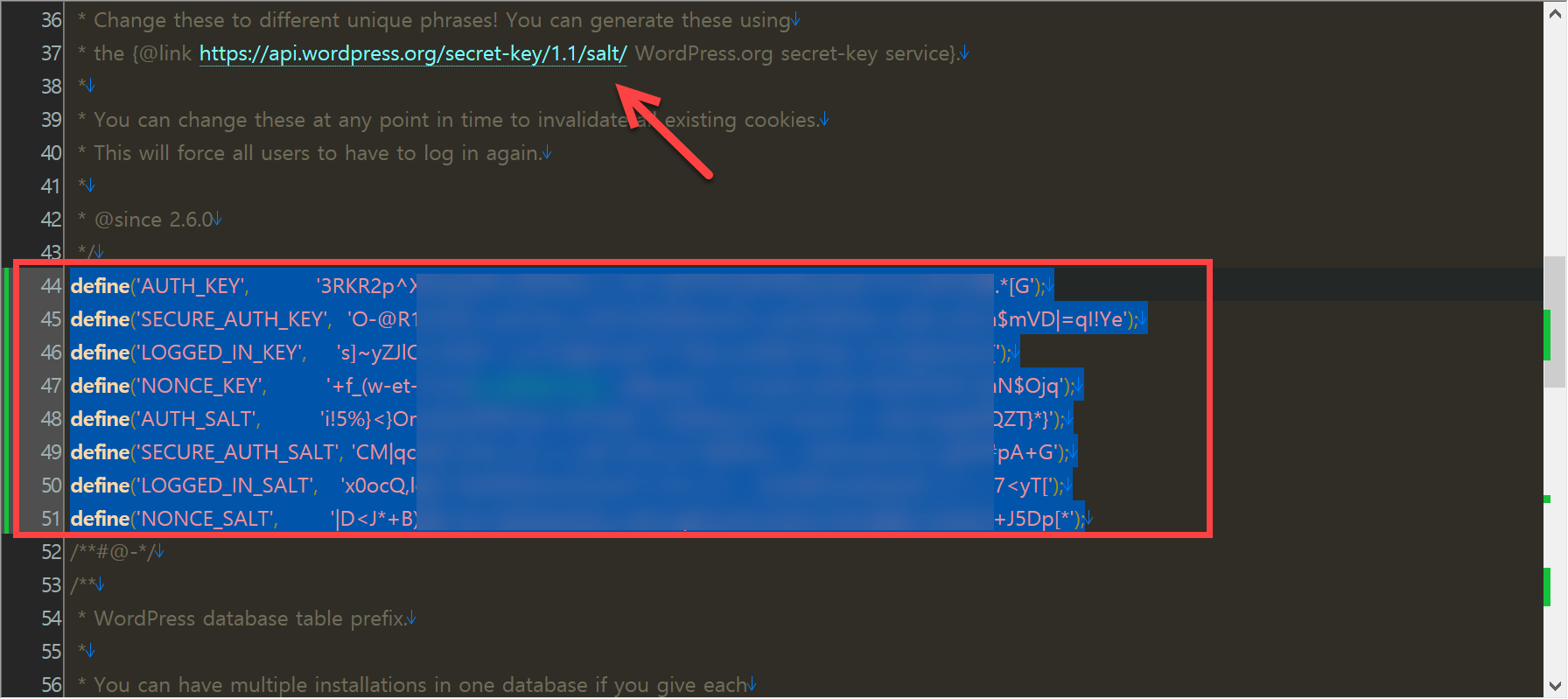 워드프레스 Salt 변경