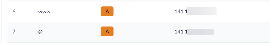 예를 들어, 블루호스트의 경우 도메인을 추가하면 다음과 같이 @ 호스트 레코드에 대하여는 IP 주소, www 호스트는 CNAME으로 지정됩니다.