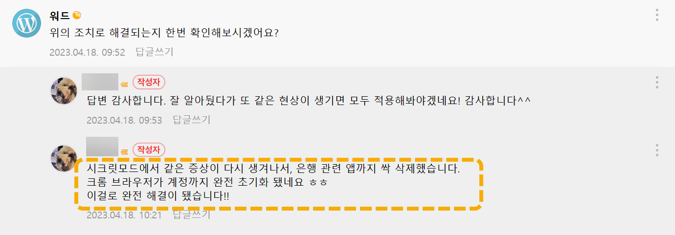 위의 조치에도 "화이트라벨 에러 페이지" 문제가 해결되지 않으면 (가령 시크릿 모드에서도 같은 증상이 나타나면) 크롬 브라우저를 삭제한 다음, 다시 설치하여 초기화하면 문제가 해결될 것입니다.