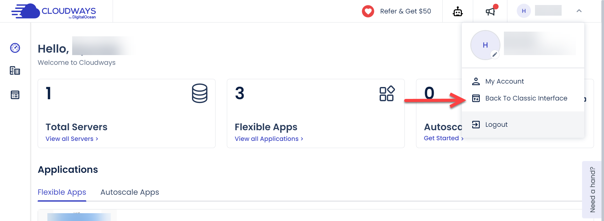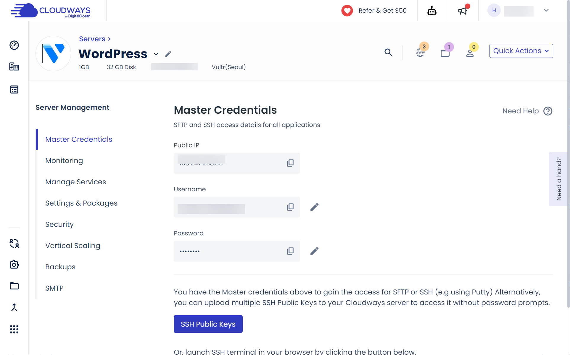 클라우드웨이즈(Cloudways)의 새로운 관리자 패널 인터페이스
