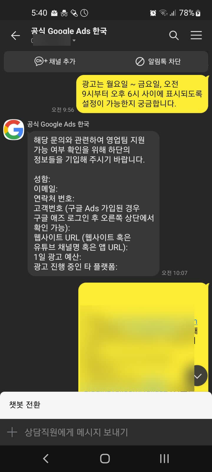 구글에 광고하기, 구글에 카카오톡 상담 요청하기