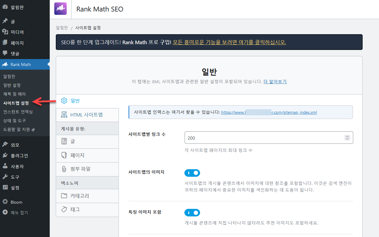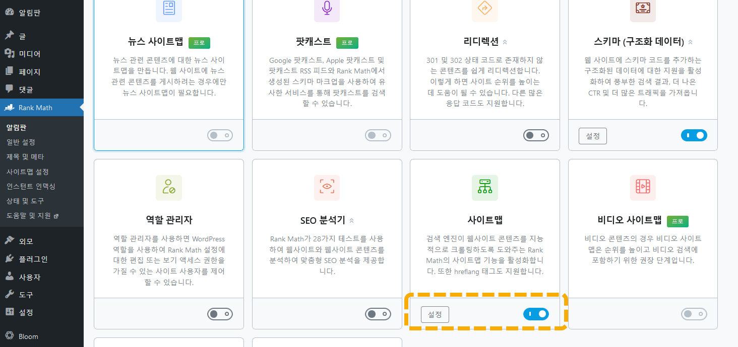 Rank Math SEO 사이트맵 활성화하기