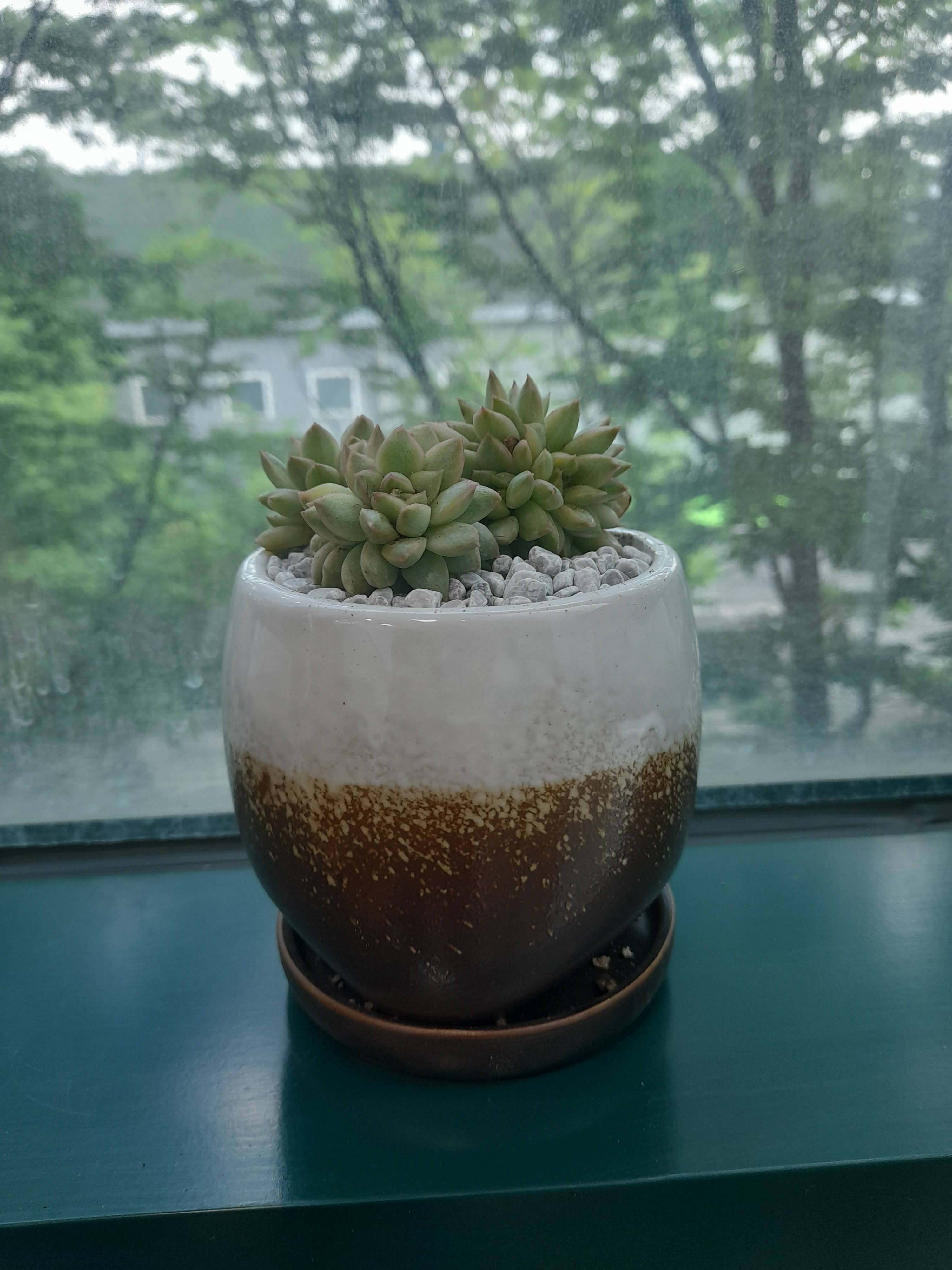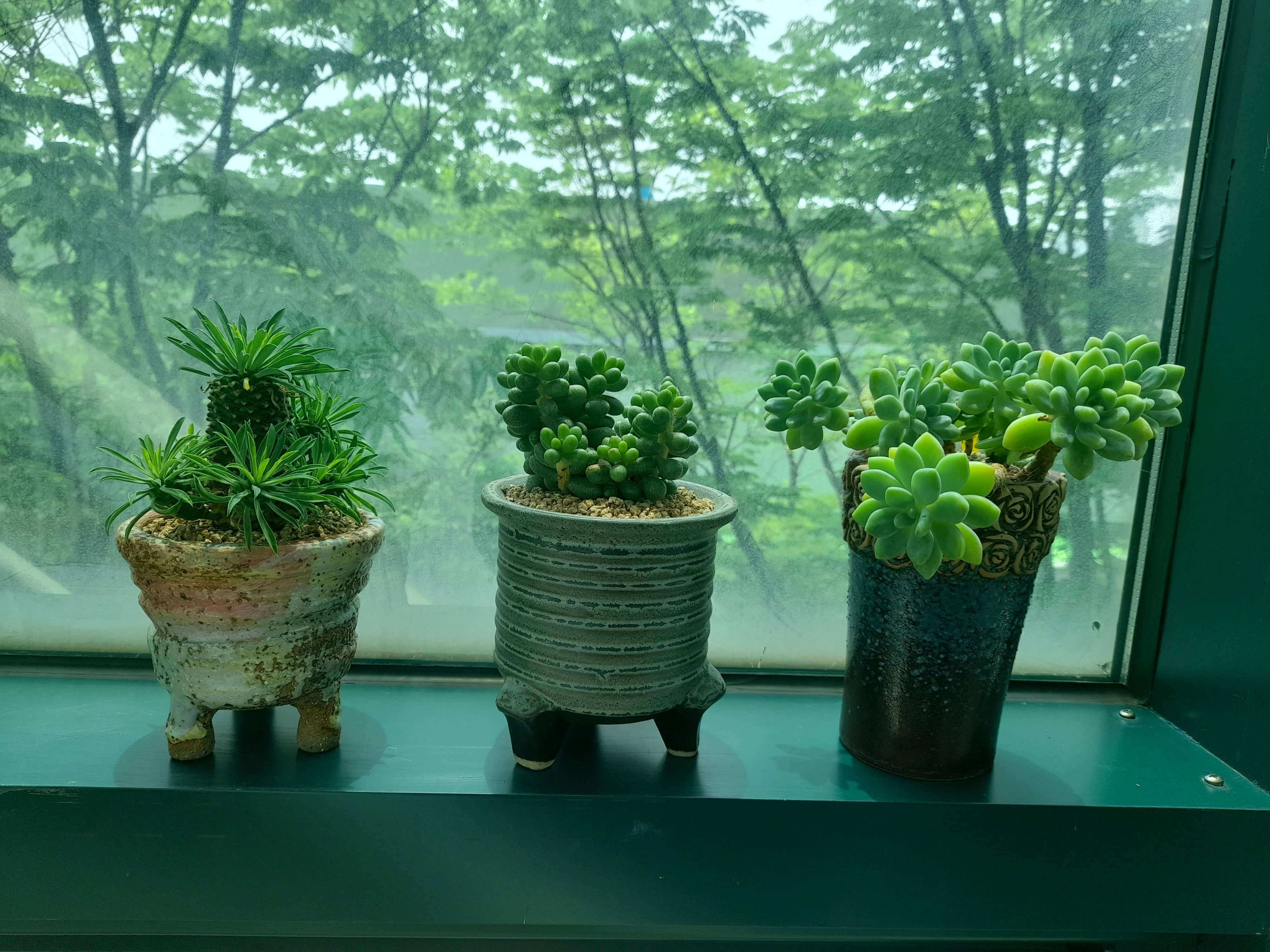 창문가에 다육이 화분을 몇 개 갖다 놓으니 분위기가 달라지는 것 같습니다. 크기가 크지 않고 관리도 어렵지 않기 때문에 다육식물도 괜찮은 것 같습니다.
