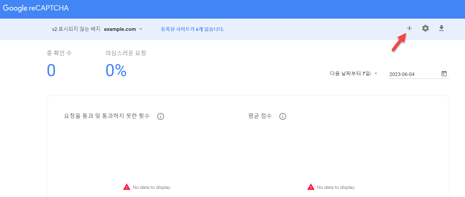 새 사이트 등록 화면이 표시되면 도메인을 추가하고 제출을 클릭하여 만들 수 있습니다.