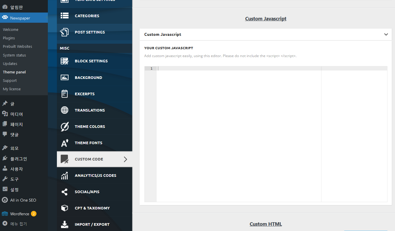 Divi 테마, 뉴스페이퍼 테마 등 일부 테마에서는 테마 옵션을 통해 푸터에 자바스크립트를 추가할 수 있는 기능을 제공합니다.